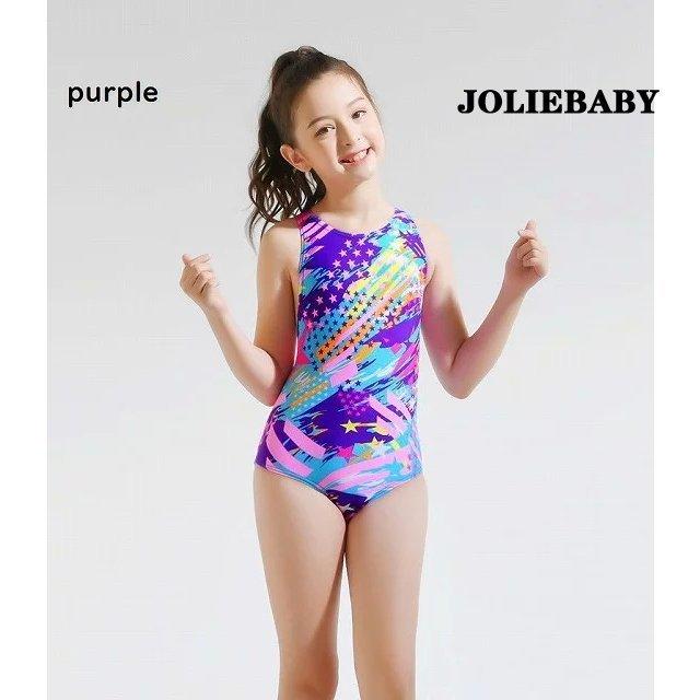 夏新作 子供水着 女の子ワンピース水着 ビーチ用品 海水浴 水遊び パープル オレンジ ローズ ガールズ スクール競泳水着 速乾撥水 水遊び プール 水泳教室練習