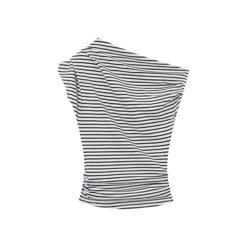 2026春夏 tシャツ 半袖 レディース 斜め肩半袖 ギャル修身 やせて見える 肩を出す しま模様 学生の上着 韓国 トップス ティーシャツ ロンt