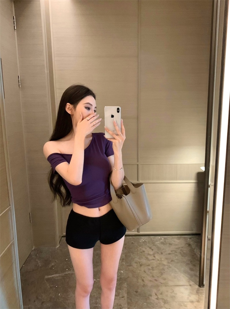 2026春夏 tシャツ 半袖 レディース 純粋な欲望 斜め肩出し 半袖 へそが出る 身を修める 学生 トップスインラッシュ韓国 トップス ティーシャツ ロンt