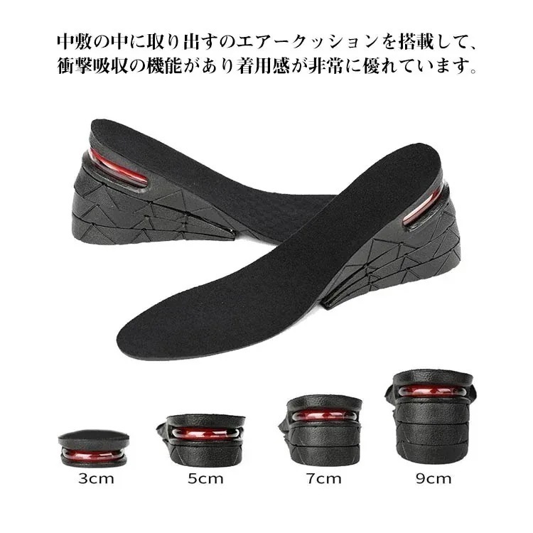 10pscグループ買い価格身長UPエアーインソール 衝撃吸収 3cm 5cm 7cm 9cm 身長アップ シークレットインソール シークレット クッション 中敷き 男女兼用 シークレットシューズ 身長