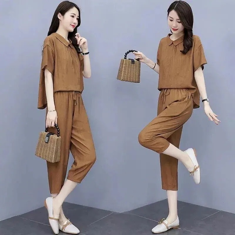 涼しく楽ちんセットアップ レディース 夏 韓国 2026新型サマーサイズカジュアルファッションリネン2点セット 半袖 ルームウェア セットアップ スウェット上下セット スーツ