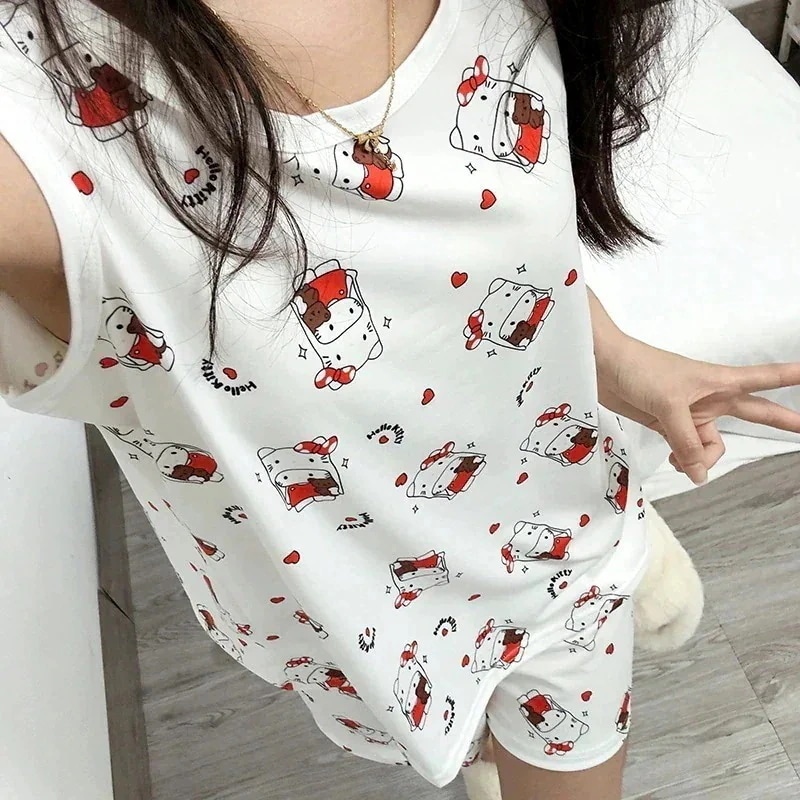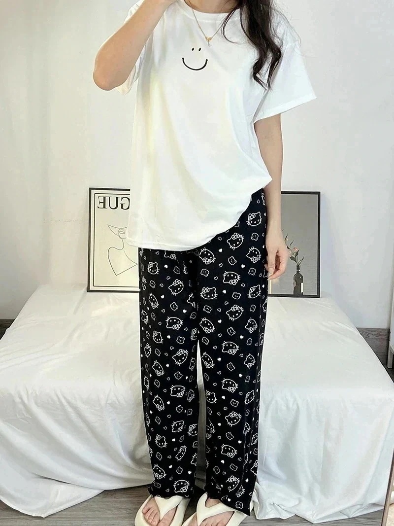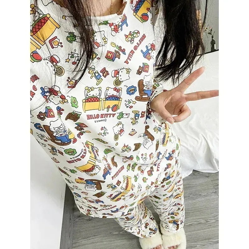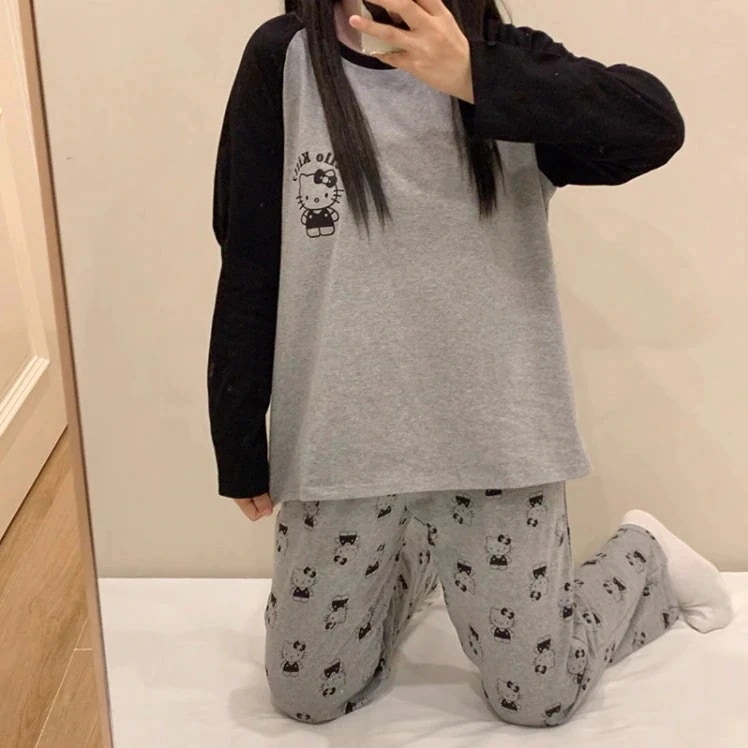[20種類]春と秋のパジャマ女性ゆったり丸首かわいいキティの部屋着シンプルカジュアル長袖長ズボン
