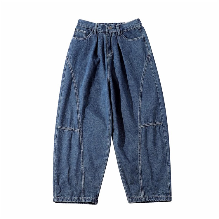 INSスタイル メンズ ビンテージデニム ワイドレッグパンツ ストレッチゴムベルト ゆったりルームシルエット ランタンパンツ ジーンズ ロング丈 カジュアルリラックスパンツ