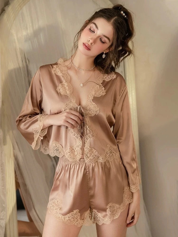 パジャマ スリープウェア 女性 2025 春夏新作 レース ホームウェア スーツ 韓国ファッション