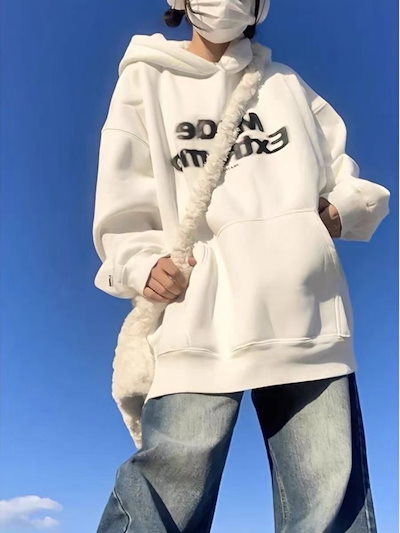 2026春新作 マウンテンパーカー 白のフード付きパーカーoversizeコート 韓国 パーカー レディース アウター ジップパーカー