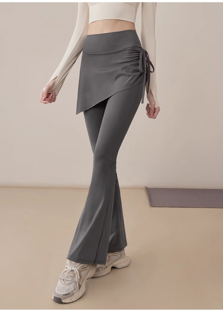 ヨガパンツ フレアパンツ ショートスカート一体型 レディース ハイウエスト 美脚 ストレッチ 速乾 ヨガウェア スポーツ ファッション 春夏秋 レギンス フレア ランニング ブラック グレー