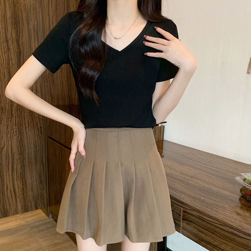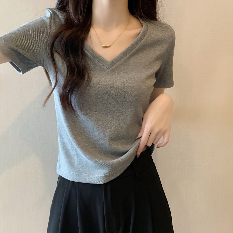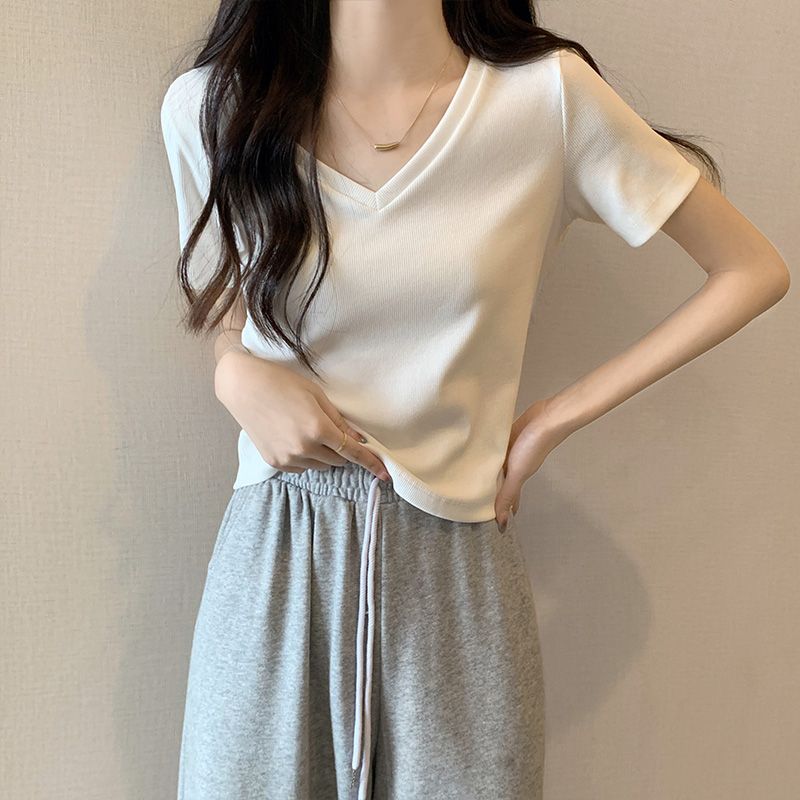 「新品限定」レディース 着痩せ 韓国 無地 夏服Tシャツ 半袖 百掛けファッショントップス
