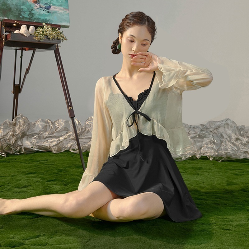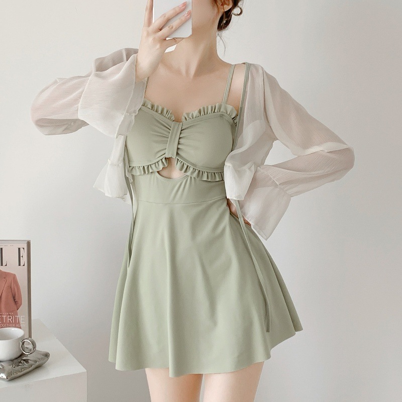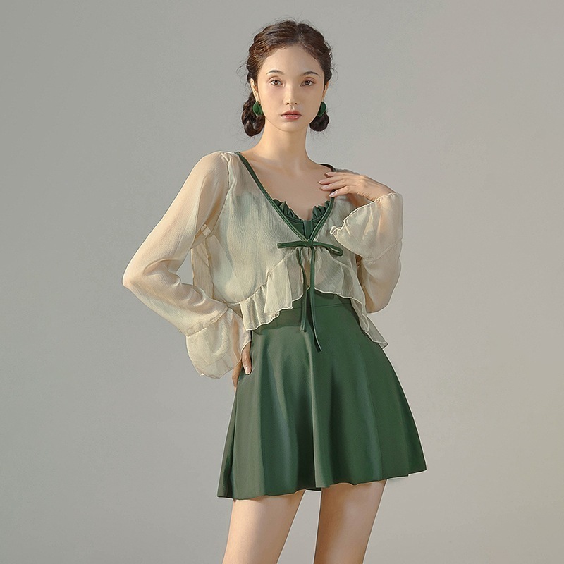 韓国ファッション 二点セット 水着 着痩せスリム見え ビキニ 温泉 体型カバー オールインワン水着 紫外線対策 可愛い ゆったり 大きいサイズ