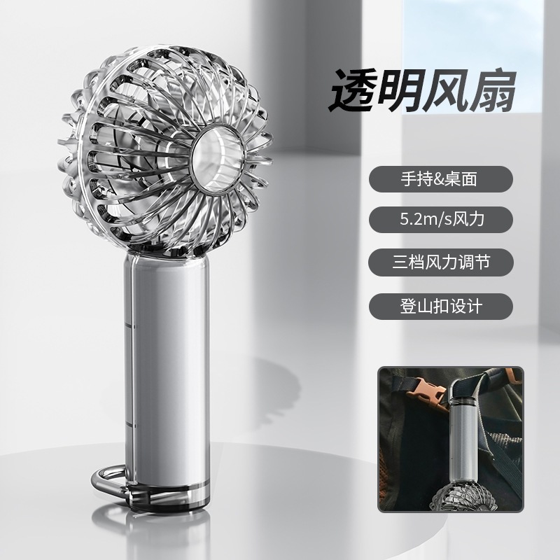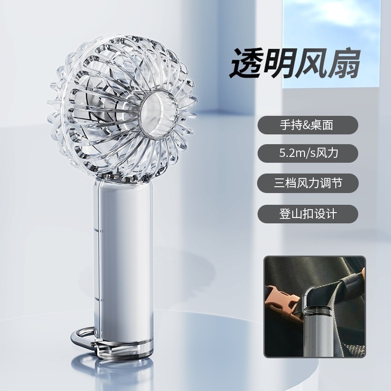 2025透明なハンドヘルドスモールファンusb屋外ポータブルフックミニデスクトップファン