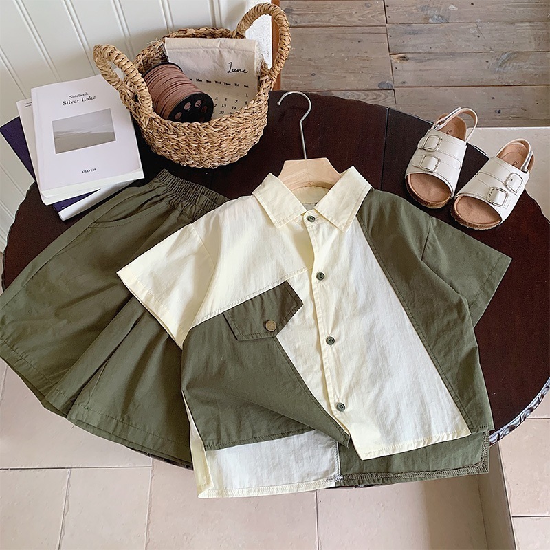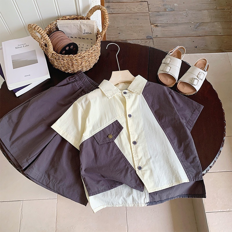 キッズスーツ2025夏新型韓国版メンズコットン半袖半ズボン2点セット 子供服 男の子 セットアップ