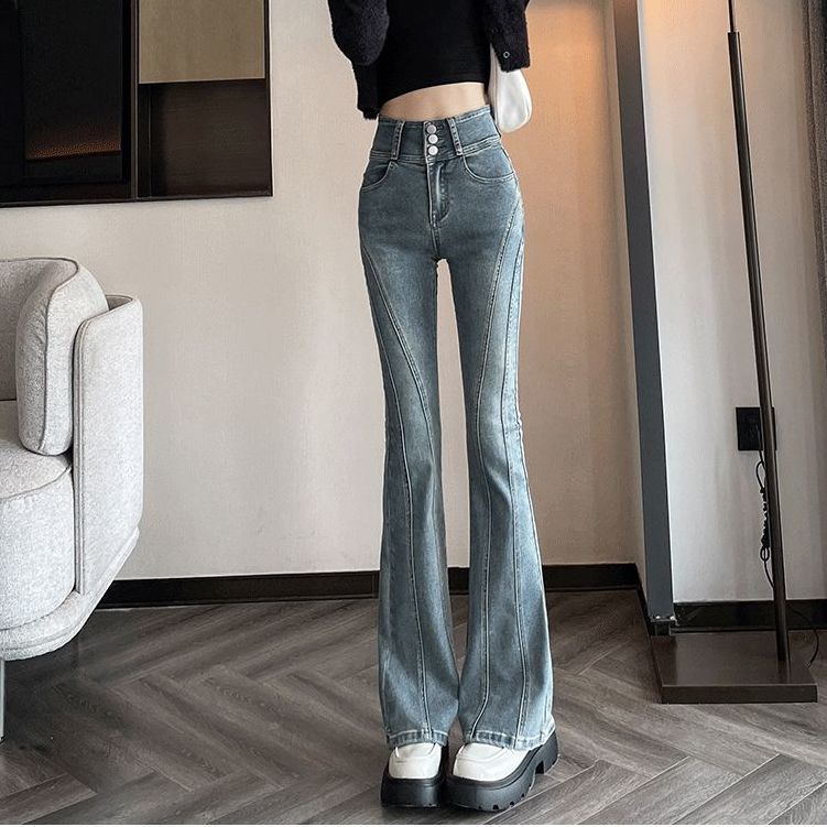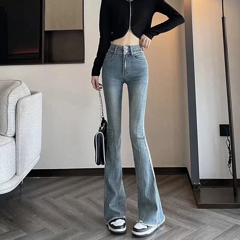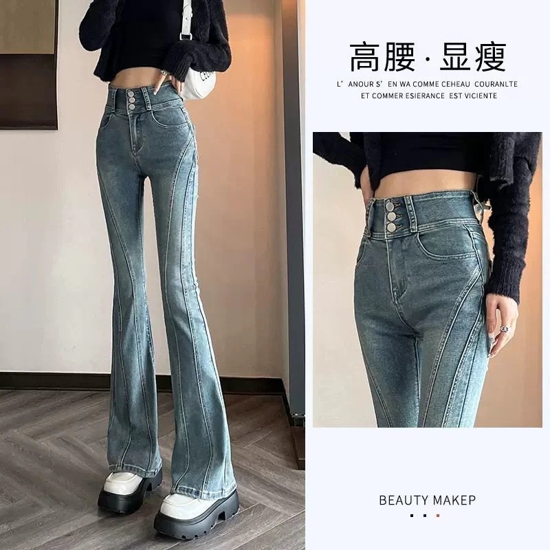2024年秋冬 ウジーンズ レディース タイト ロ ー スリム 床丈 ややフレア ロングパンツ 秋冬
