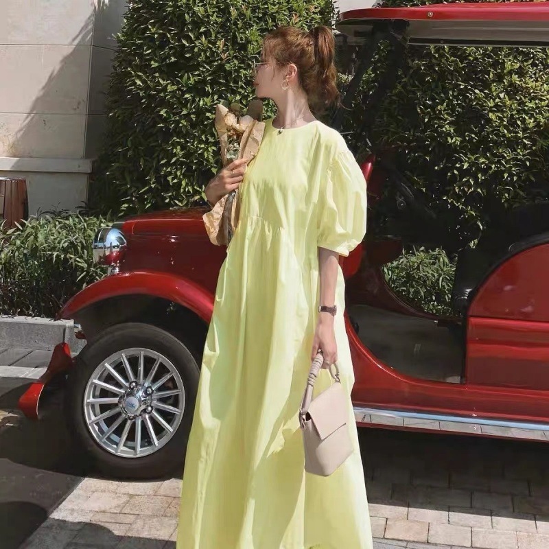 新作 ワンピース ロングタイプ バブル袖 可愛い 気質 たるみスカートラッフル ワンピース 夏 レディースファッション ドレス かんび 百掛け 体型カバー 大きいサイズ 通勤 OL
