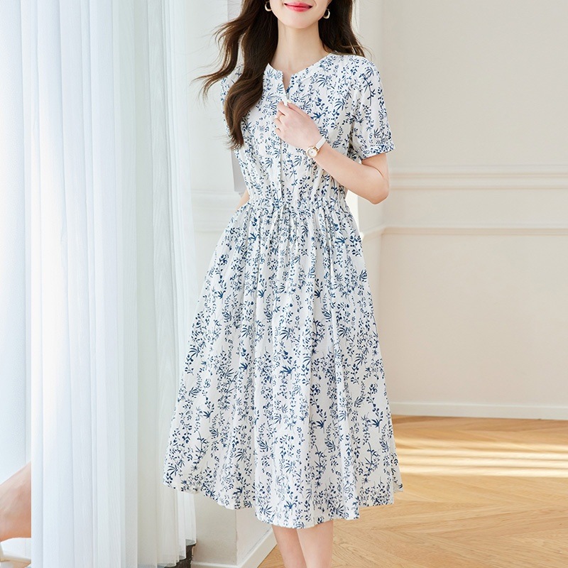 新作 ワンピース レディース 可愛い 気質 ゆったり 着やせ ドレス 小柄の花柄ワンピース ウエスト引き締め 大きいサイズ 膝を超える 体型カバー 春 秋 夏 百掛け 通勤 二次会