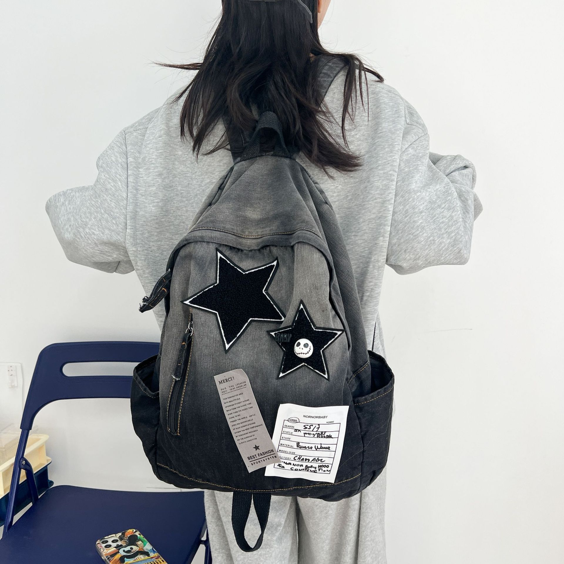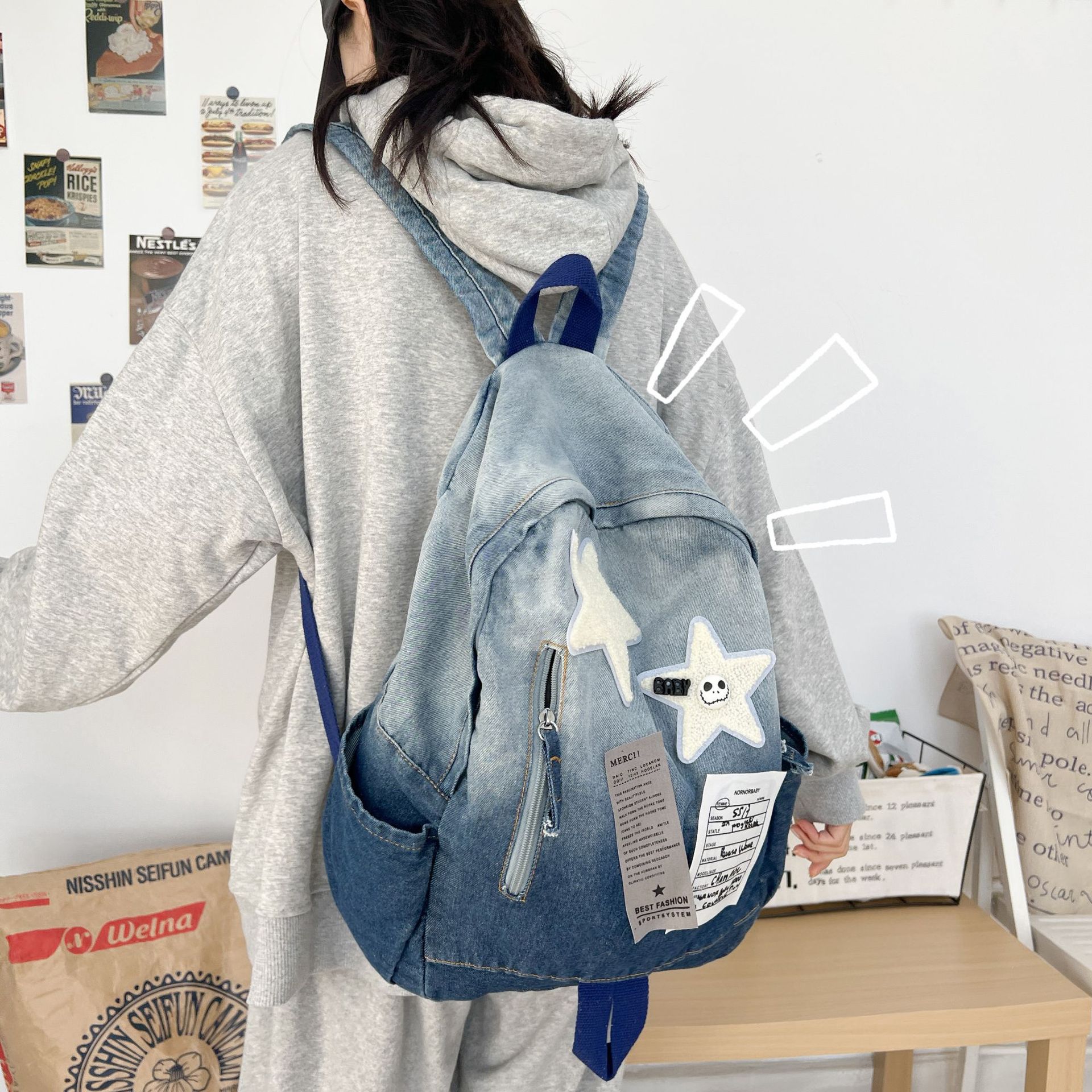 学生カバン大容量個性洋気ランドセル新デニムリュック可愛い星通学リュックバッグバッグ