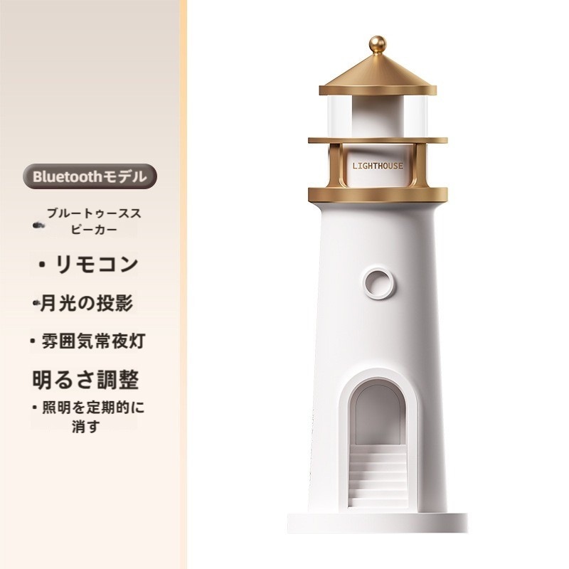 新型ムーンライト灯台プロジェクターランプ (人体センサー/リモコン対応 ベッドサイド用 ムード照明 睡眠補助ライト ブルートゥーススピーカー内蔵 ギフト向け)