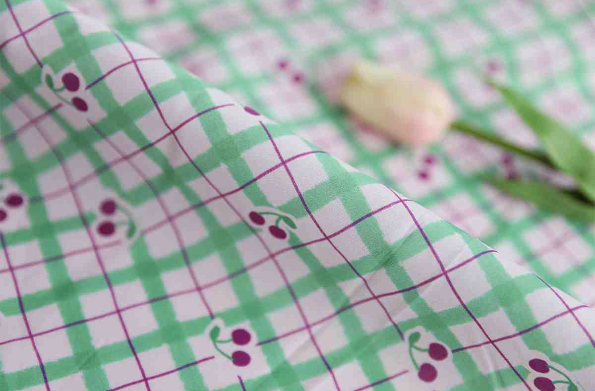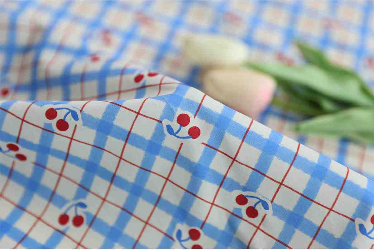 【韓国生地】 大幅 30s 果物柄 チェックギンガム チェリー コットン100% Check Cherry Fabric 90cm X 145cm
