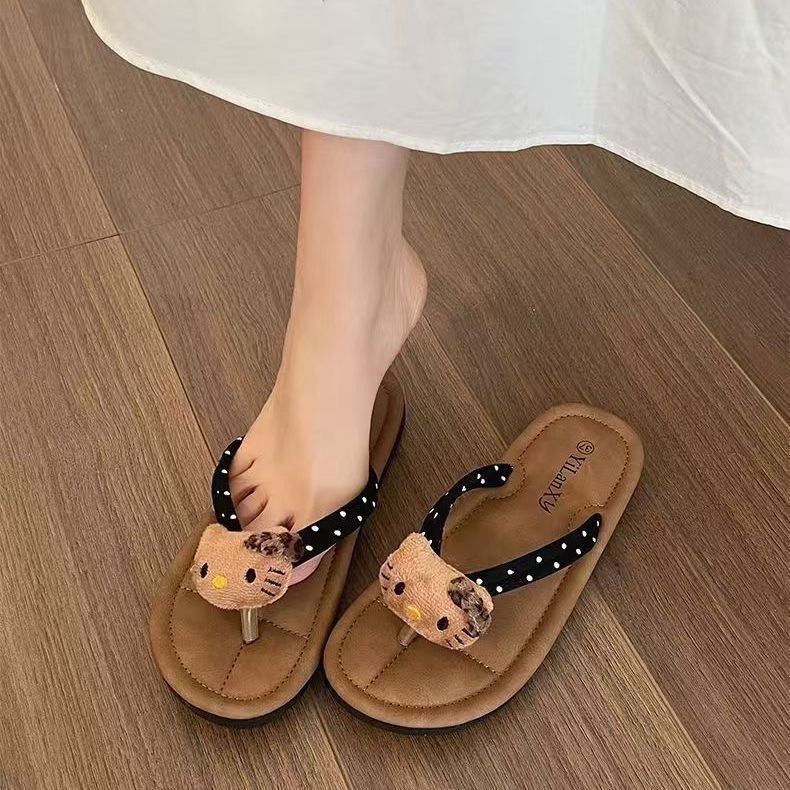 かわいい人の字で女性の波を引くキティ2025新夏の砂浜滑り止めリゾート平ヒール通気性が悪くない足付き女子スリッパ誕生日プレゼントかわいいアニメ