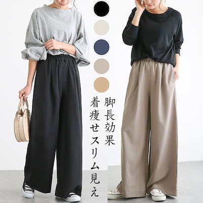 【2025新作】ワイドパンツ レディース 伸縮性のあるウエスト ハイウエスト 綿麻 垂れ感 ズボン 大きいサイズ 体型カバー 脚長效果ドローストリング ゆったり ロングパンツ 着痩せスリム見え