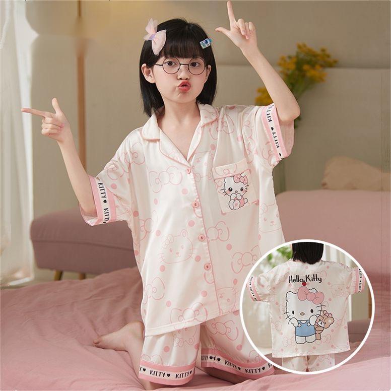 サンリオサンリオ 新作 韓国 大人気 親子服 アイスシルク パジャマ ふわふわ マイメロ ハローキティ パジャマ セット 半袖+半ズボン 女の子 2点セット部屋着 親子ペアル 空調服