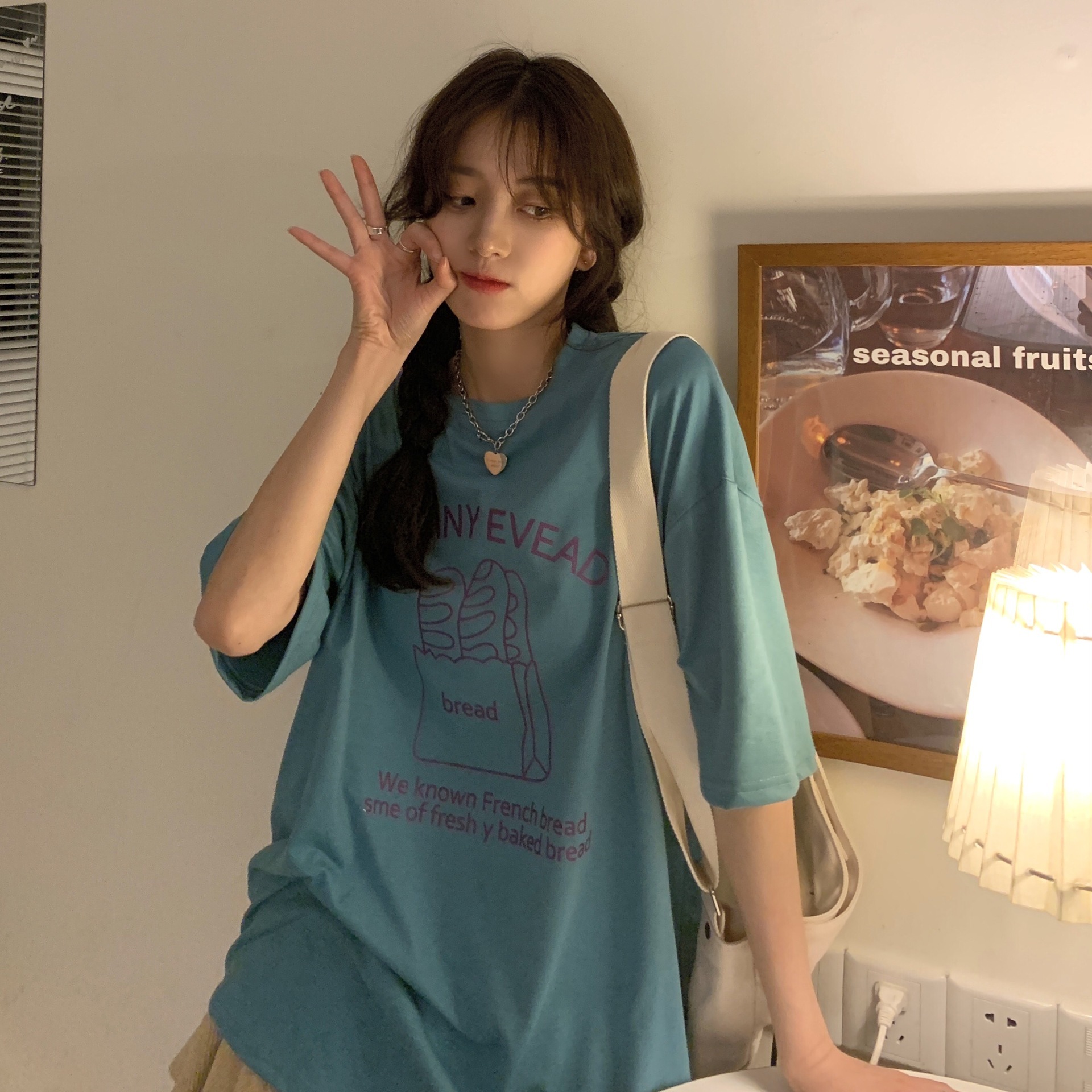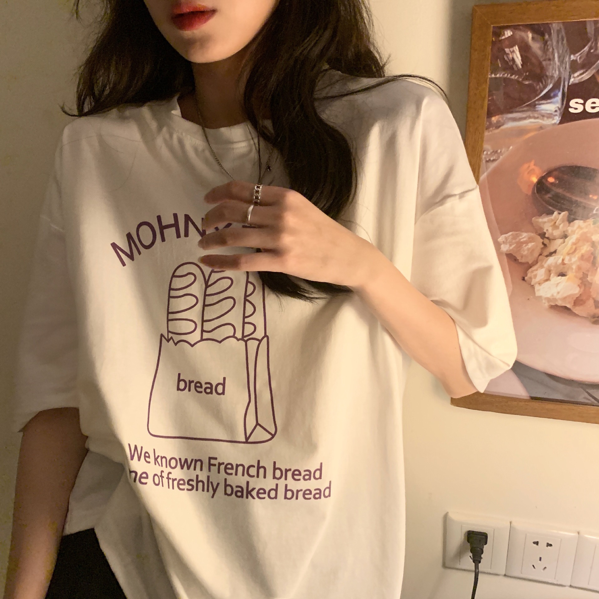 半袖Tシャツレディースサマーウェア韓国版港風原宿風白ゆったりレトロプリントトップス