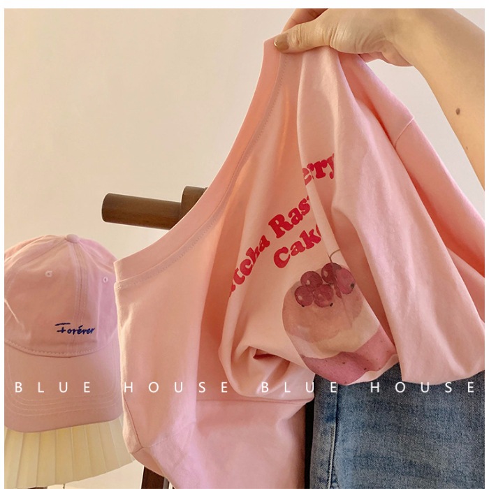 2025新型夏コットン半袖Tシャツ韓国版ゆったり半袖ヘッダー丸首トップス