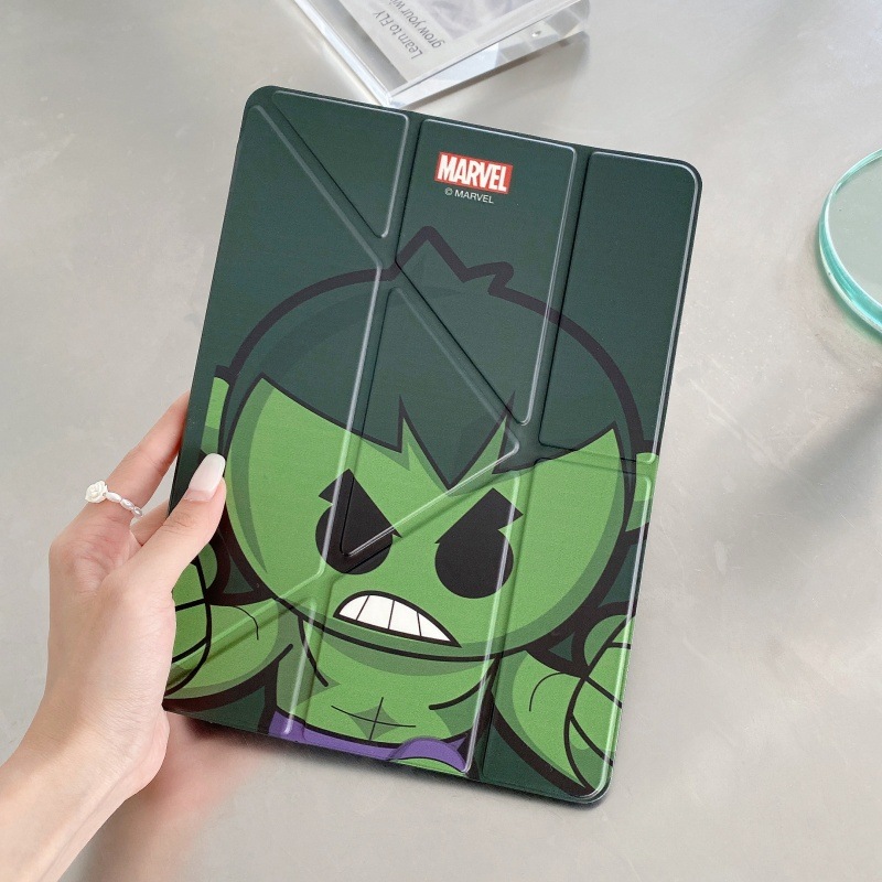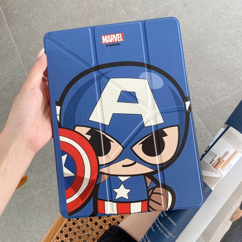 Q版漫威アイアンマンY+三つ折り適用ipadpro 2022モデル12.9/11インチ保護ケース高級感アップルiPad 9世代保護カバーカートゥーンmini 7/6平板後ケースair 5/4落下防止