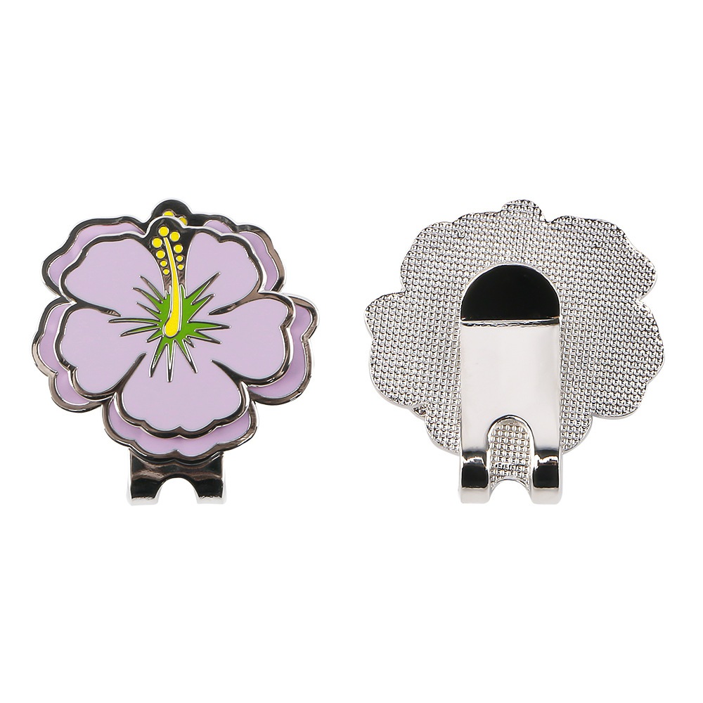 ゴルフ マーカー 花柄 2重デザイン マグネット付き 磁石 帽子クリップ ゴルフキャップクリップ めっちゃかわいい 黄色 紫 ピンク ゴルフ用品 小物