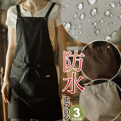 防水 防油 カフェエプロン スタッズ ペレット シンプル 3色 キャンバス アースカラー エプロンワンピース 帆布 エプロン