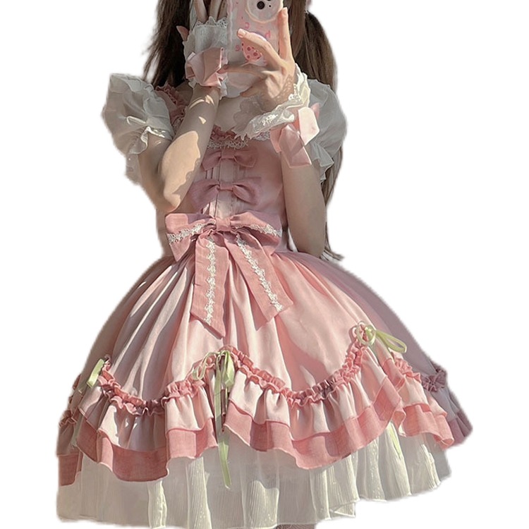 ピンクの可愛いロリータドレス優しいドレスロリータレディプリンセスロースカート