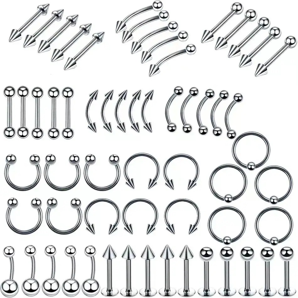 60個ピアスジュエリーセット鼻爪リップ爪舌爪耳骨爪セプタムリング眉毛鎖骨爪