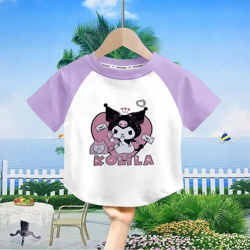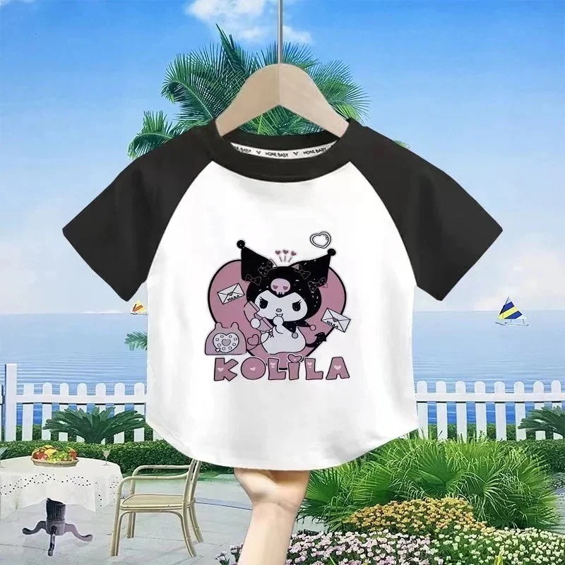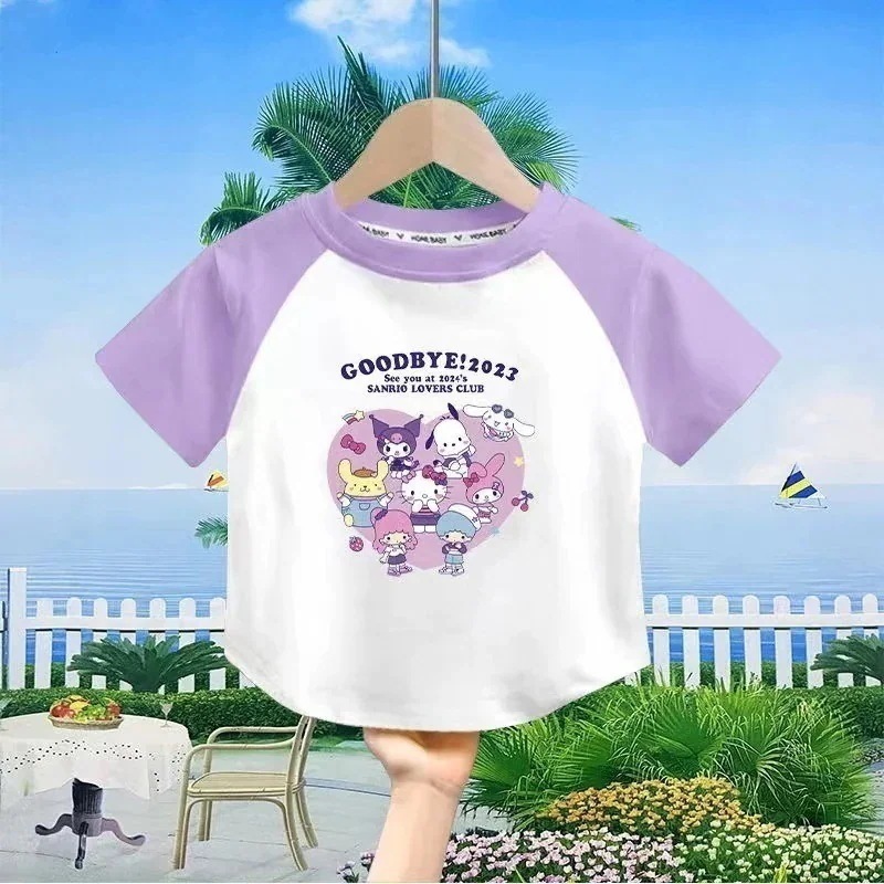 サンリオ女の子ファッションTシャツブラウス女の子 子供服 半袖 サンリオ 夏 通園着 キャラクター110-160cm tシャツ綿 トップス 福袋2025Tシャツシャツ 通学着 クロ