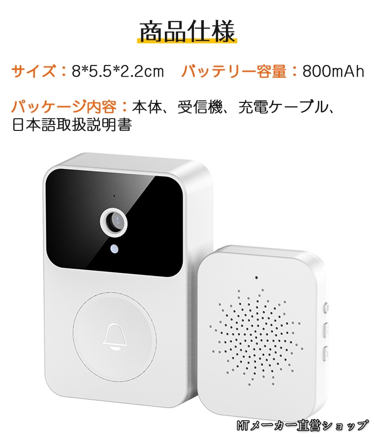 インターホン カメラ付き 工事不要 ワイヤレス ドアホン ワイヤレス 通話 スマホ連動 ビデオドアベル ビデオドアホン ワイヤレスドアホン スマホ 充電式 無線 WIFI 防犯カメラ 双方向音声 遠隔