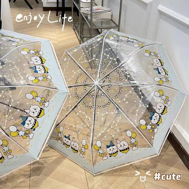 【3日出荷】20 TYPEちいかわ傘ピンク完全自動傘の折り畳み傘傘ビニール日焼け止めuv透明雨の両方を使用しますソーラー傘を使用