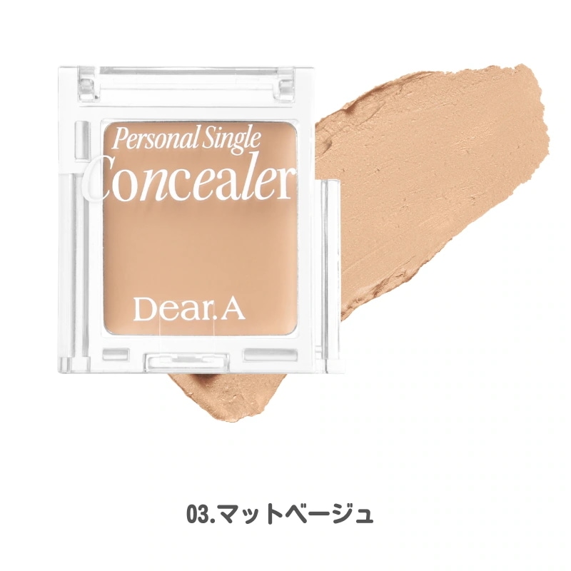 02ベージュと03マットベージュの違いは、色味はほんの少しマットベージュの方がピンク味がある感じですが、ほぼ同じです。質感はマットベージュの方が少しマットでカバー力があります。でも乾燥することはなく、クリーミーでみずみずしいです。パレットコンシーラーを愛用していますが、Dear.aのコンシーラーは冬にピッタリです。