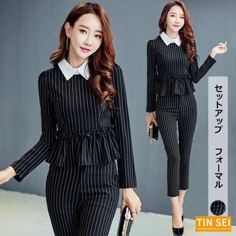 大人気 上品 スーツセット レディース通勤ストライプアウターおしゃれ上品スーツセット ビジネス制服OL風20代30代40代事務服フォーマルスーツセット 通勤/オフィス