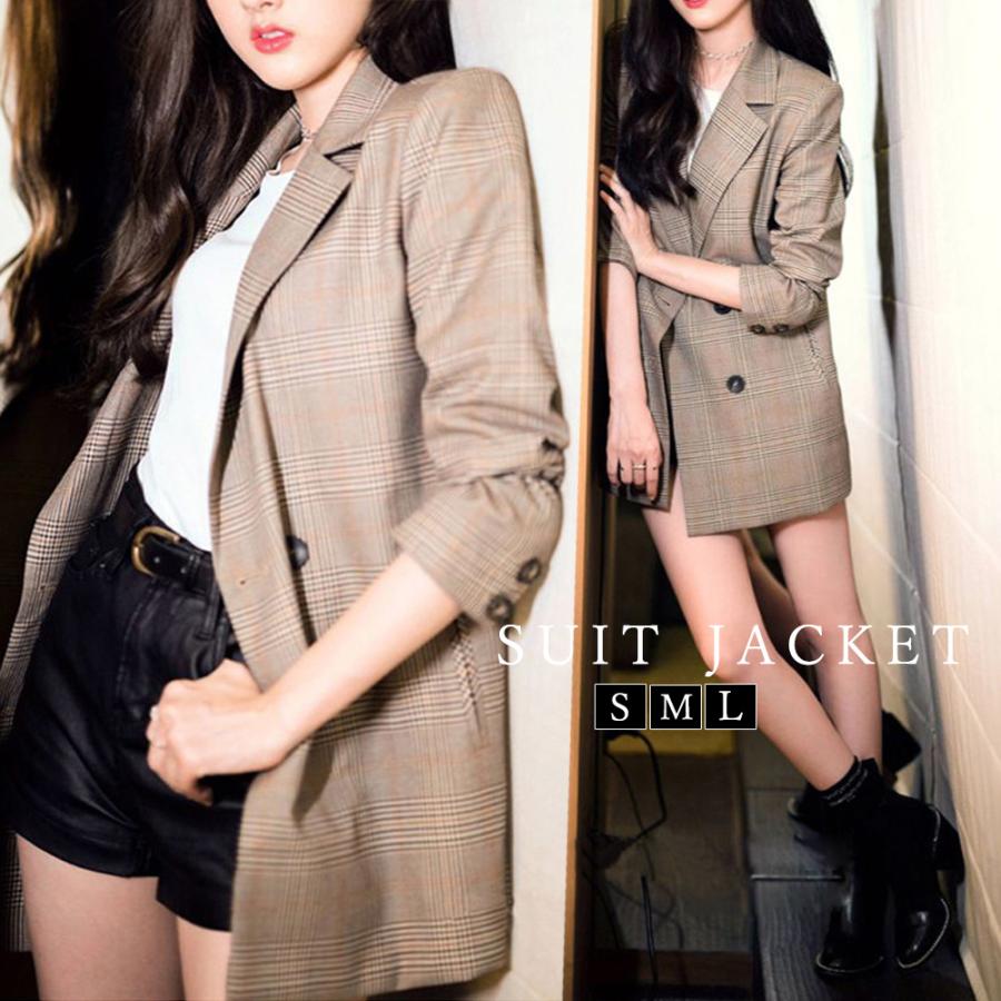 テーラード ジャケット レディース チェック柄 スーツジャケット ゆったり アウター 体型カバー 可愛い 羽織り 着やせ【ネコポス
