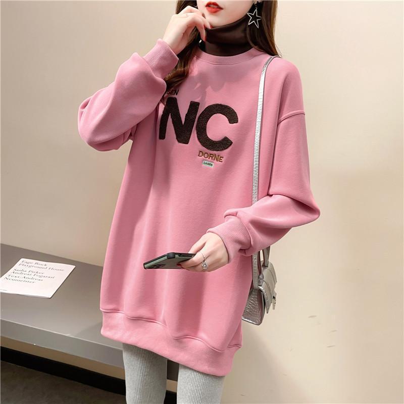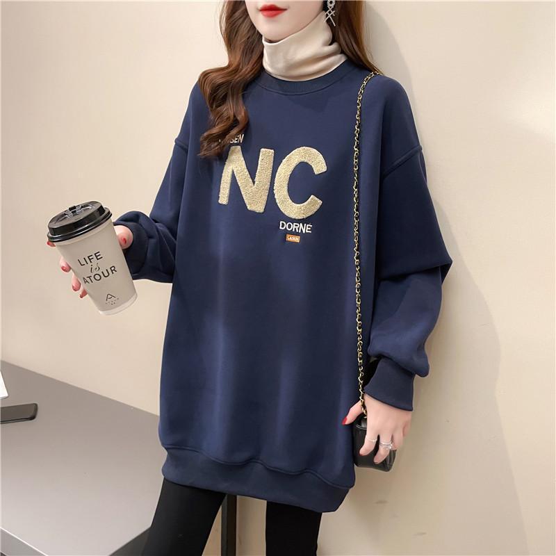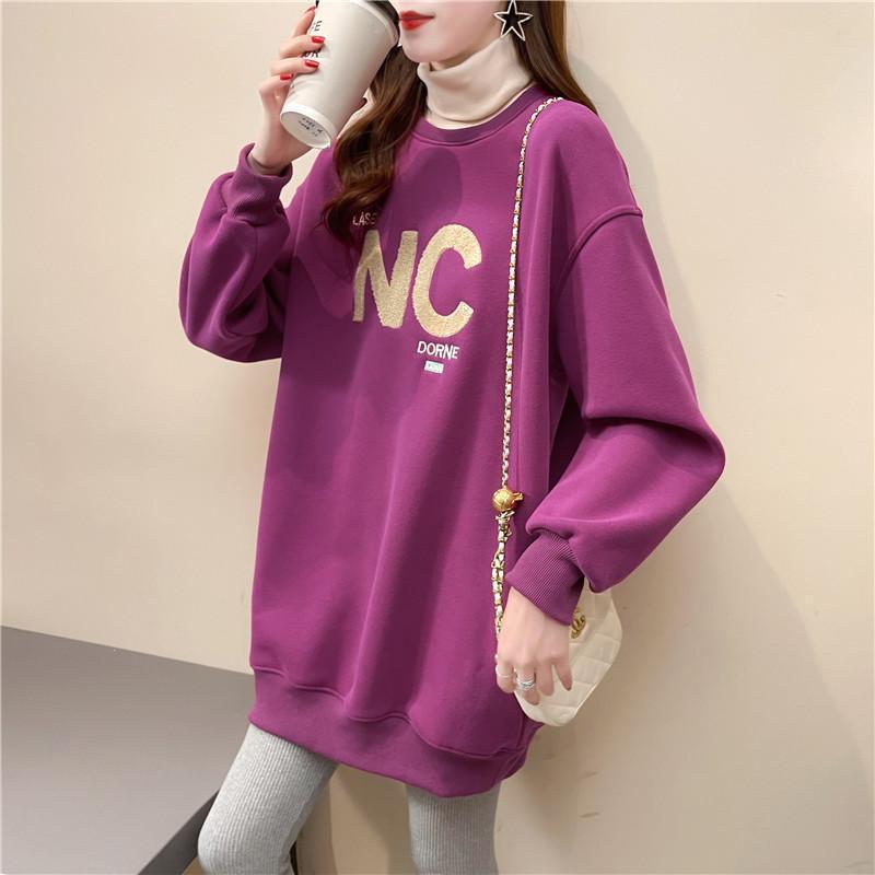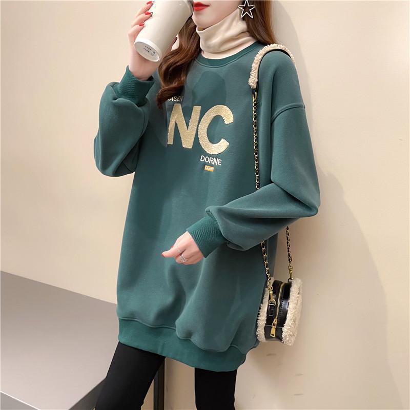 【毎日厳選 】 秋冬300斤大码高领加绒卫衣女加厚宽松中长款假两件新款慵懒外套