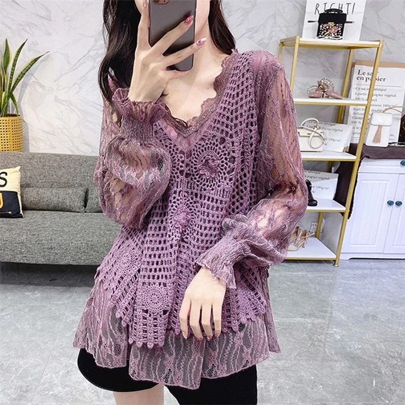 大人気 上品 ファッション レース トップス 長袖シャツ ブラウスHZ45