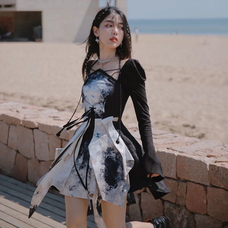 数量限定 トワイライトディッシュランゲージバタフライエコロジカルドレス女性2024油絵プリントドレス