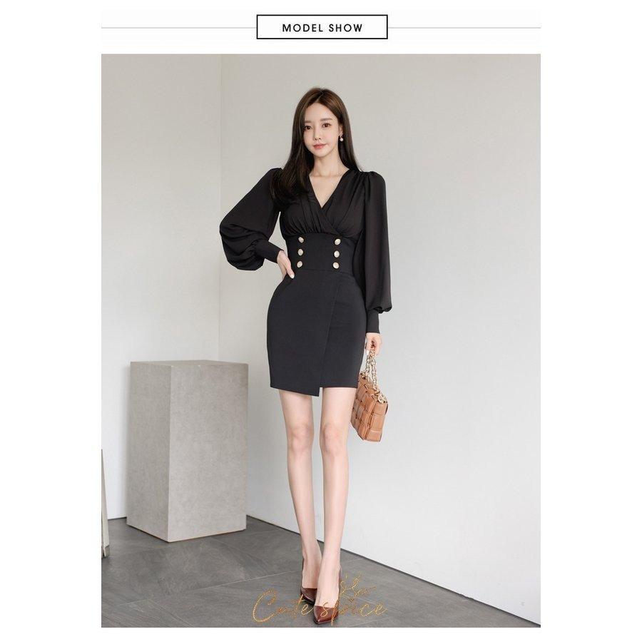 人気SALE ワンピース レディース 韩風 きれいめワンピース 長袖 Vネック ショット丈 タイトスカート オシャレ韓国風 40代大人30代 着痩せ