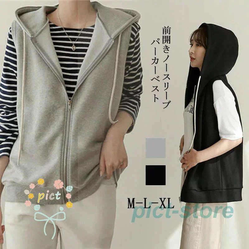 新品 ベスト ベスト パーカー レディース 前開き トップス フード付き ジップアップ パーカーベスト ノースリーブ ゆったり カットソーベスト 重ね着 レイヤード