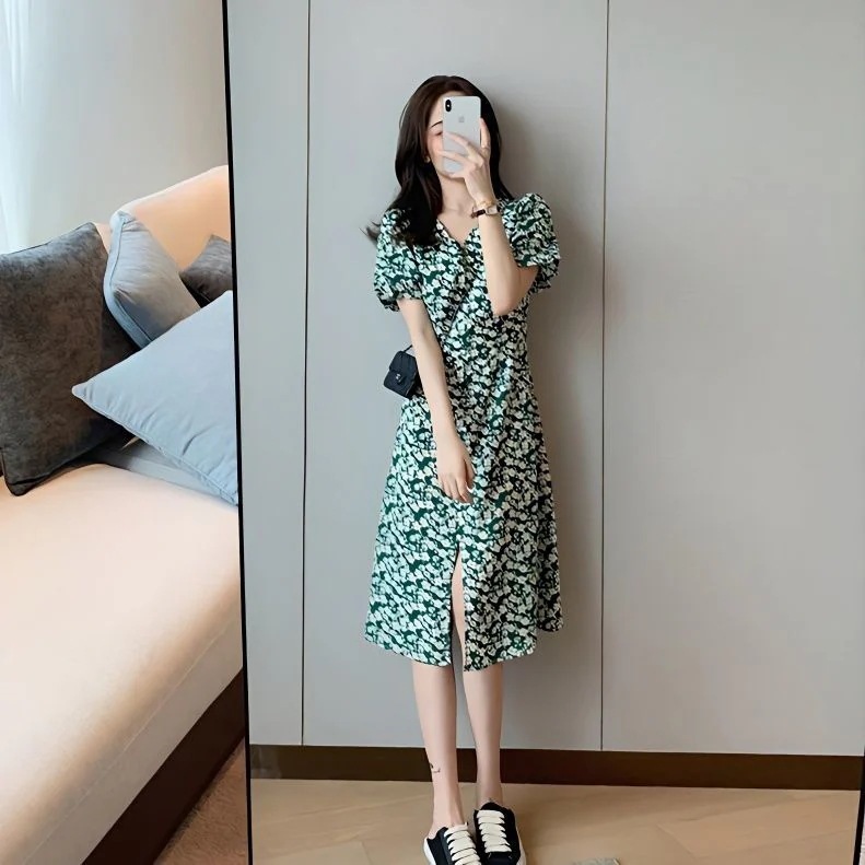 【早い者勝ちタイムセール】フランス エレガント 桔梗 スリットスカート ファッション 花柄ワンピース デザインセンス 仙女のスカート季節