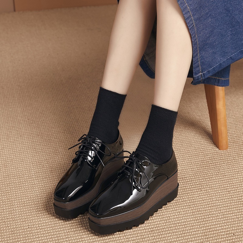 今すぐ欲しい!厚底スニーカー レディース シューズ 靴 ウェッジソール スクエアトゥ ローカット レースアップ 脚長 美脚 スニーカー 合皮 エナメル 春春厚底シューズ