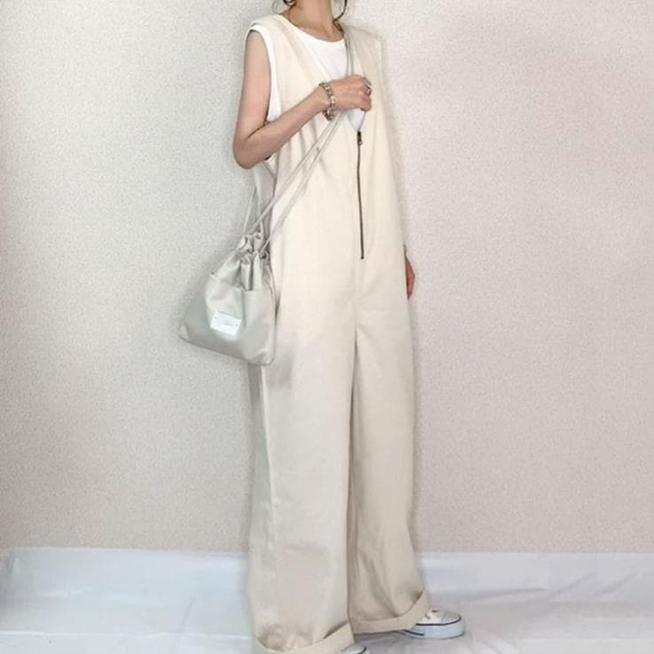サロペット 春 夏 オールインワン ゆったり レディース Vネック 体型カバー パンツ 着痩せ 無地 ワイドパンツ オーバーオール ボトムス ロングパンツ リゾート シ