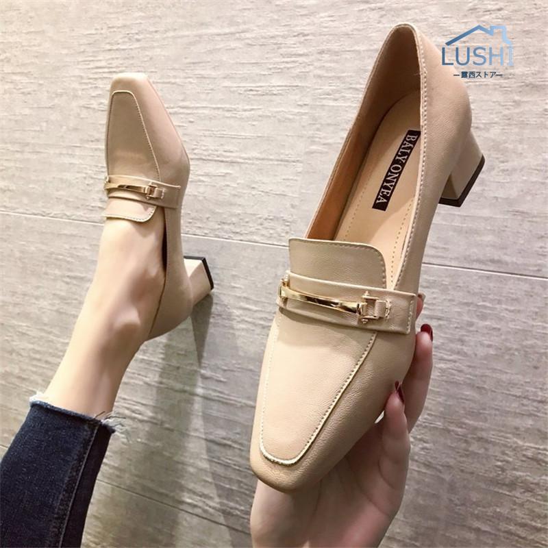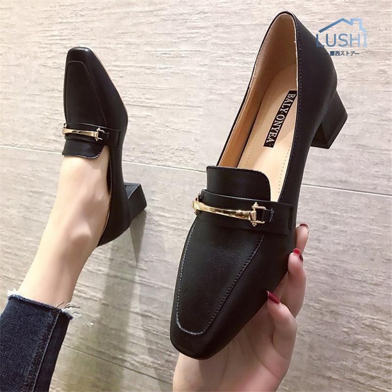 高級な質感 ローファー パンプス レディース レザーシューズ パンプス ミドルヒール 中ヒール 太めヒール 歩きやすい 革靴 ビジネス 通勤 カジュアル 高級感