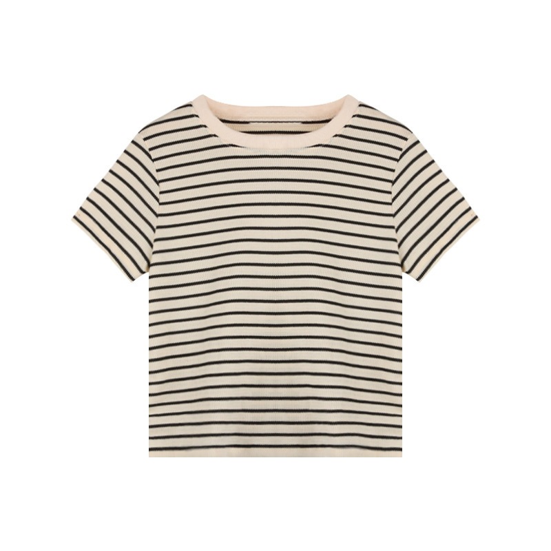 レトロなストライプの半袖tシャツの女性のデザイン感の丸首の底のシャツの2025夏のゆったりとしたレジャーの学生の上着のファッション