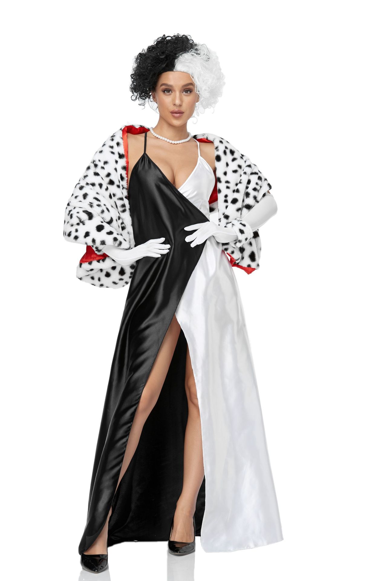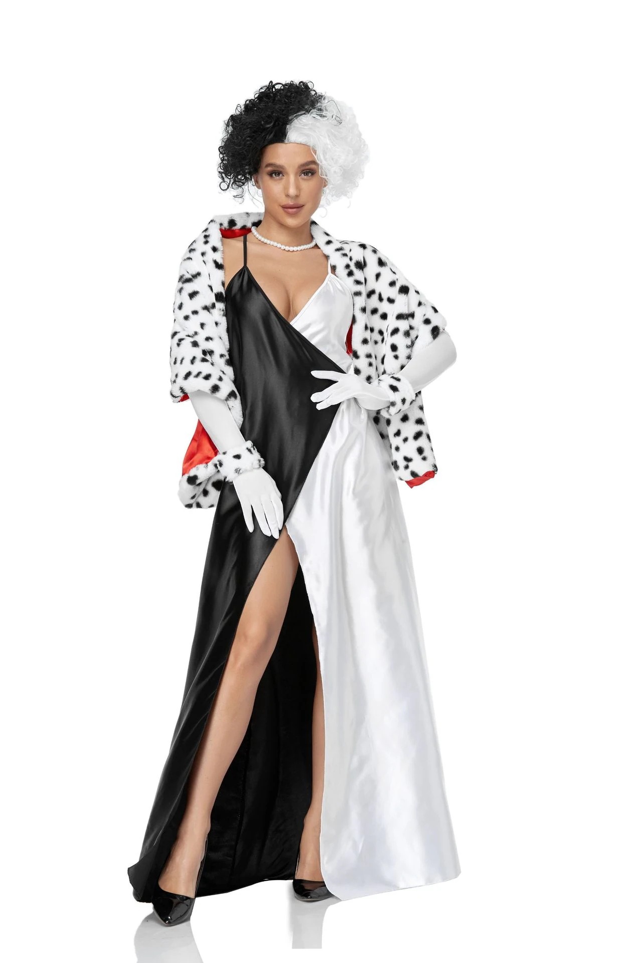 新しくリリースされた映画ロールプレイ パフォーマンス衣装 ダルメシアン ステージ 101 クルエラ衣装 コスプレ