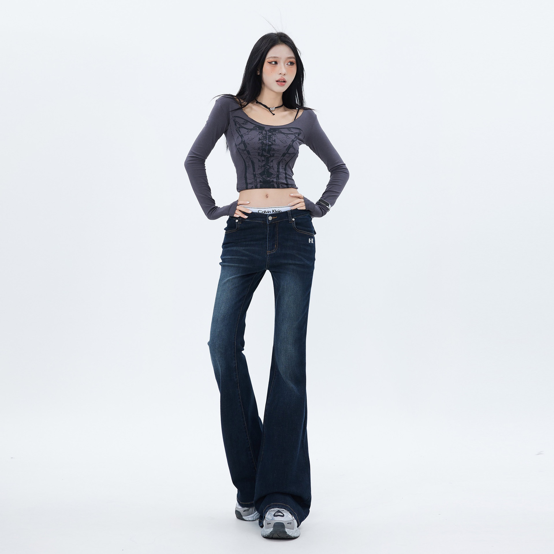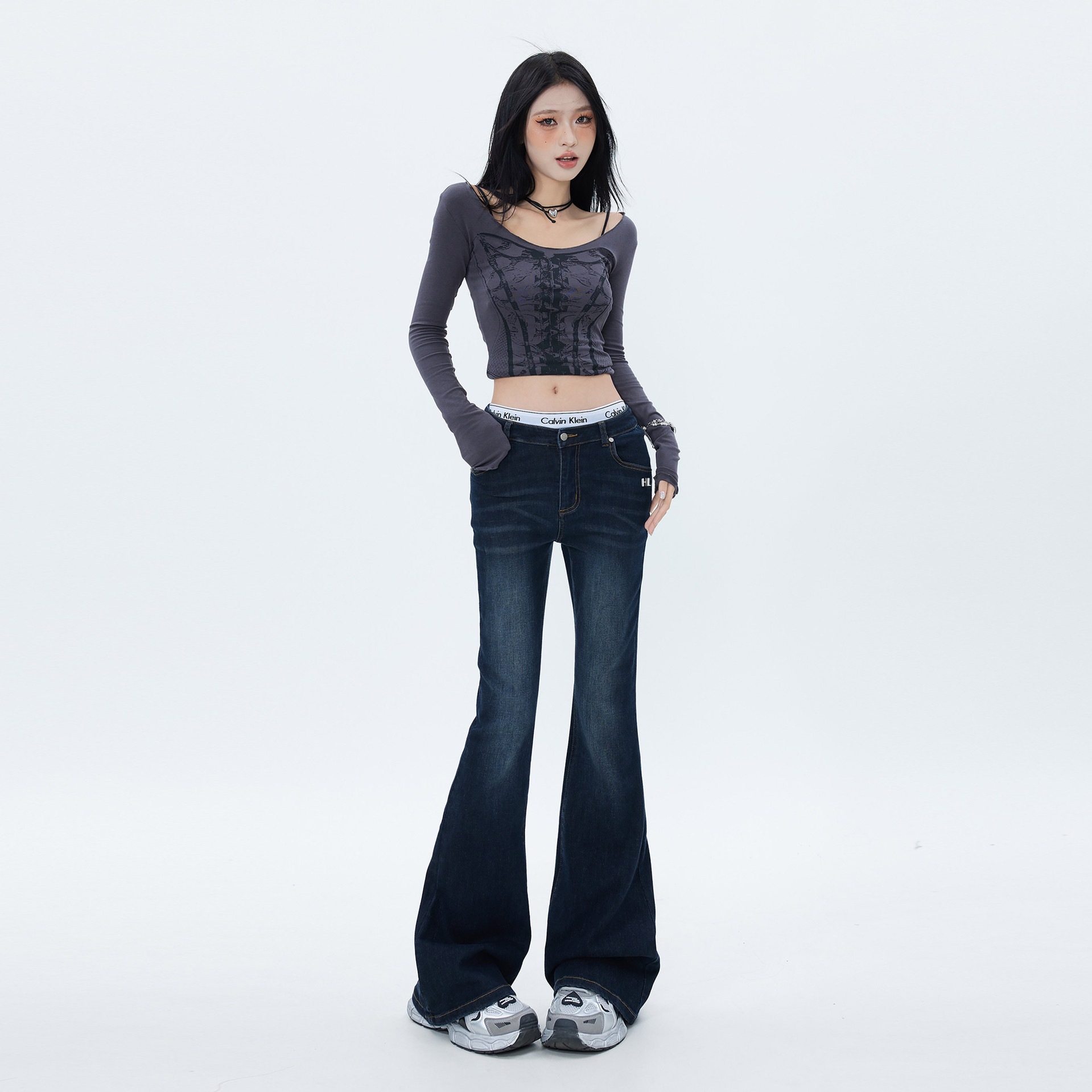セクシー ホットガール レディース フロアモップパンツ フレアジーンズ スリムフィット ローライズ オールマッチ ヒップアップ