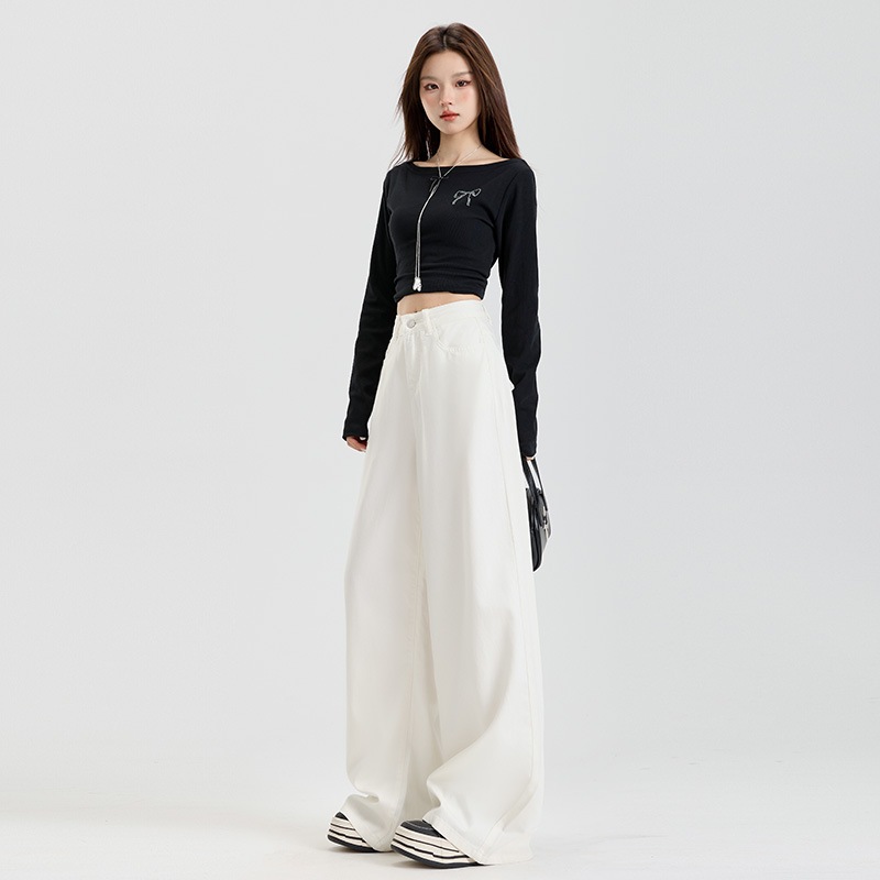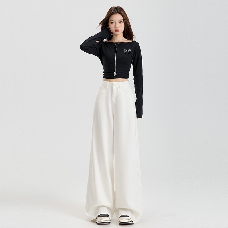女性用レイジーワイドレッグジーンズハイウエストルーズスリムカジュアルオールマッチストレートパンツトレンディ