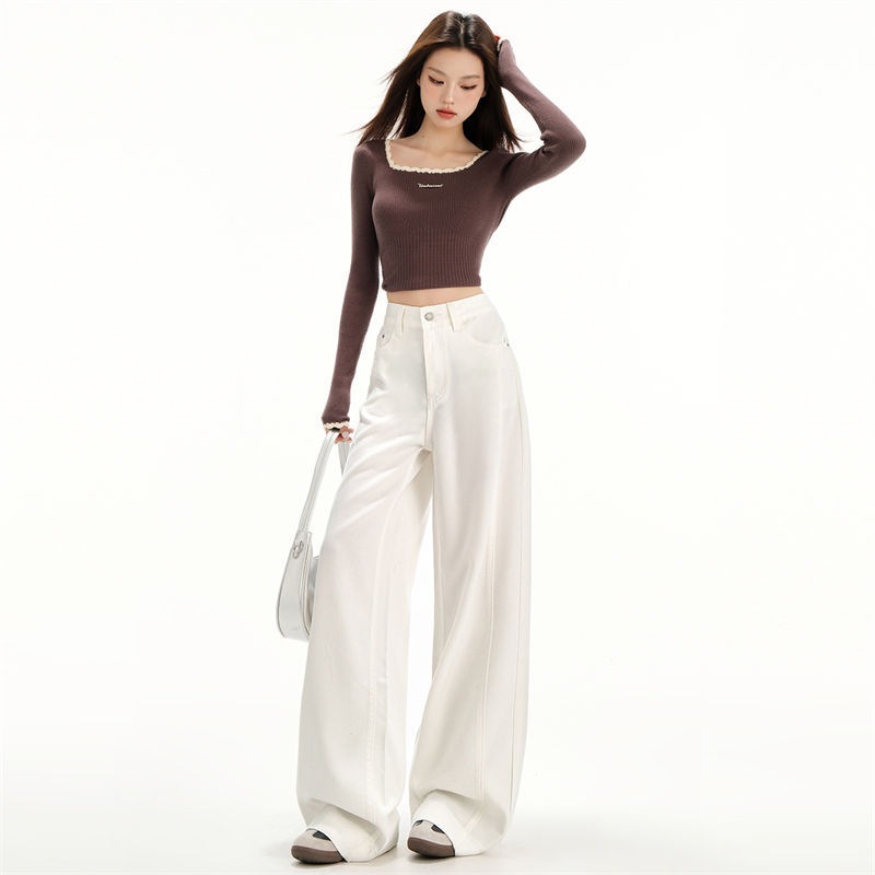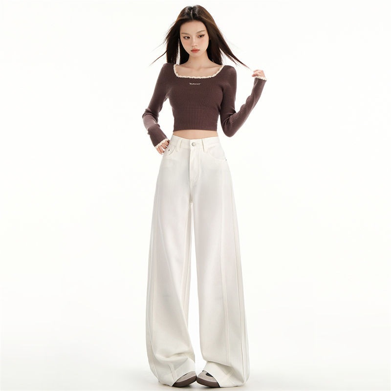 3プルーフ生地サイドシームハイワイドレッグジーンズレディースルーズスリムヒップカバー多用途モップパンツ